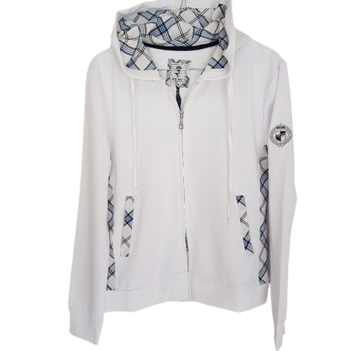 Giacca in tessuto felpa con davanti tessuto denim stampato pois