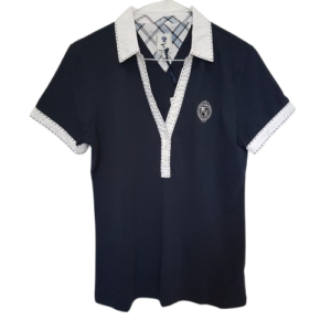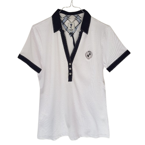 Polo in caldo tessuto jersey con riporti in tessuto righe