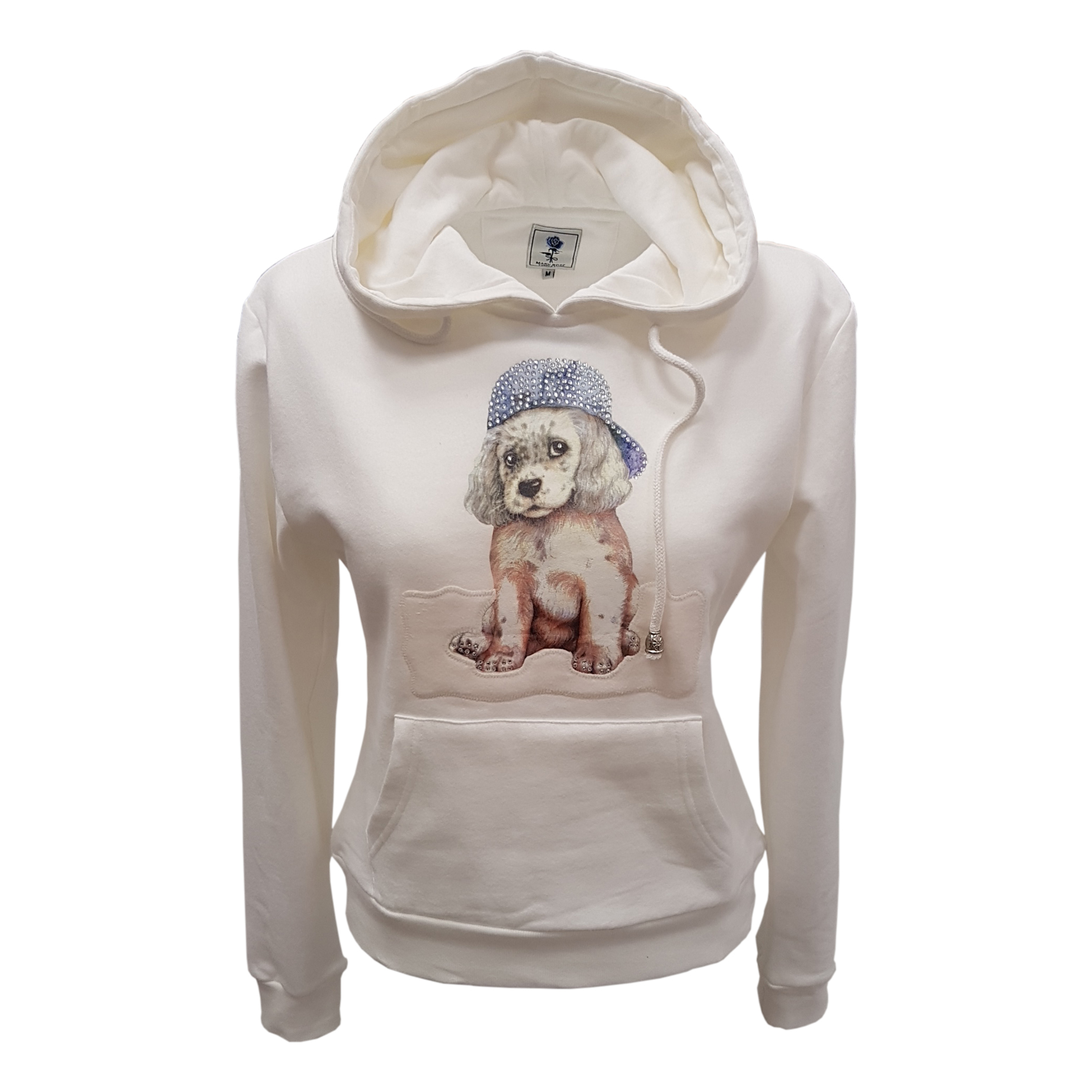 FELPA CON CAPPUCCIO E STAMPA CAGNOLINO 95% COTONE 5% ELASTAN