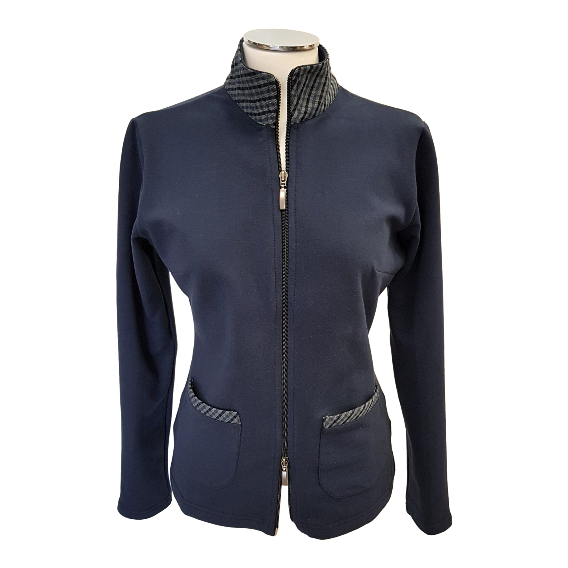 FELPA CON ZIP E BORDI TESSUTO QUADRETTI