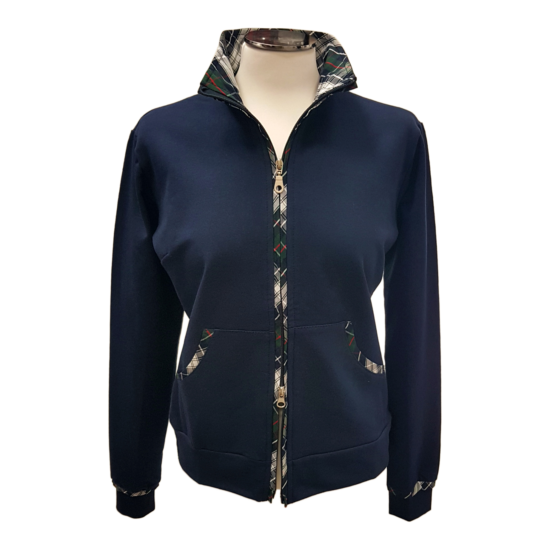 FELPA CON ZIP E DETTAGLI IN TESSUTO SCOZZESE