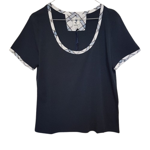 T-shirt girocollo con profilo in tessuto quadri