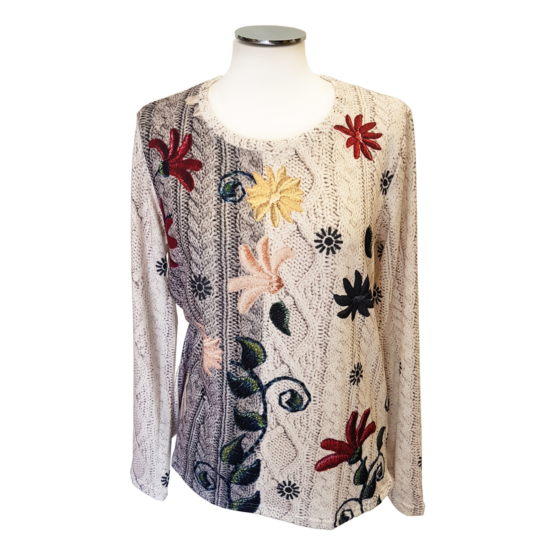 T-SHIRT MANICA LUNGA STAMPA EFFETTO MAGLIA