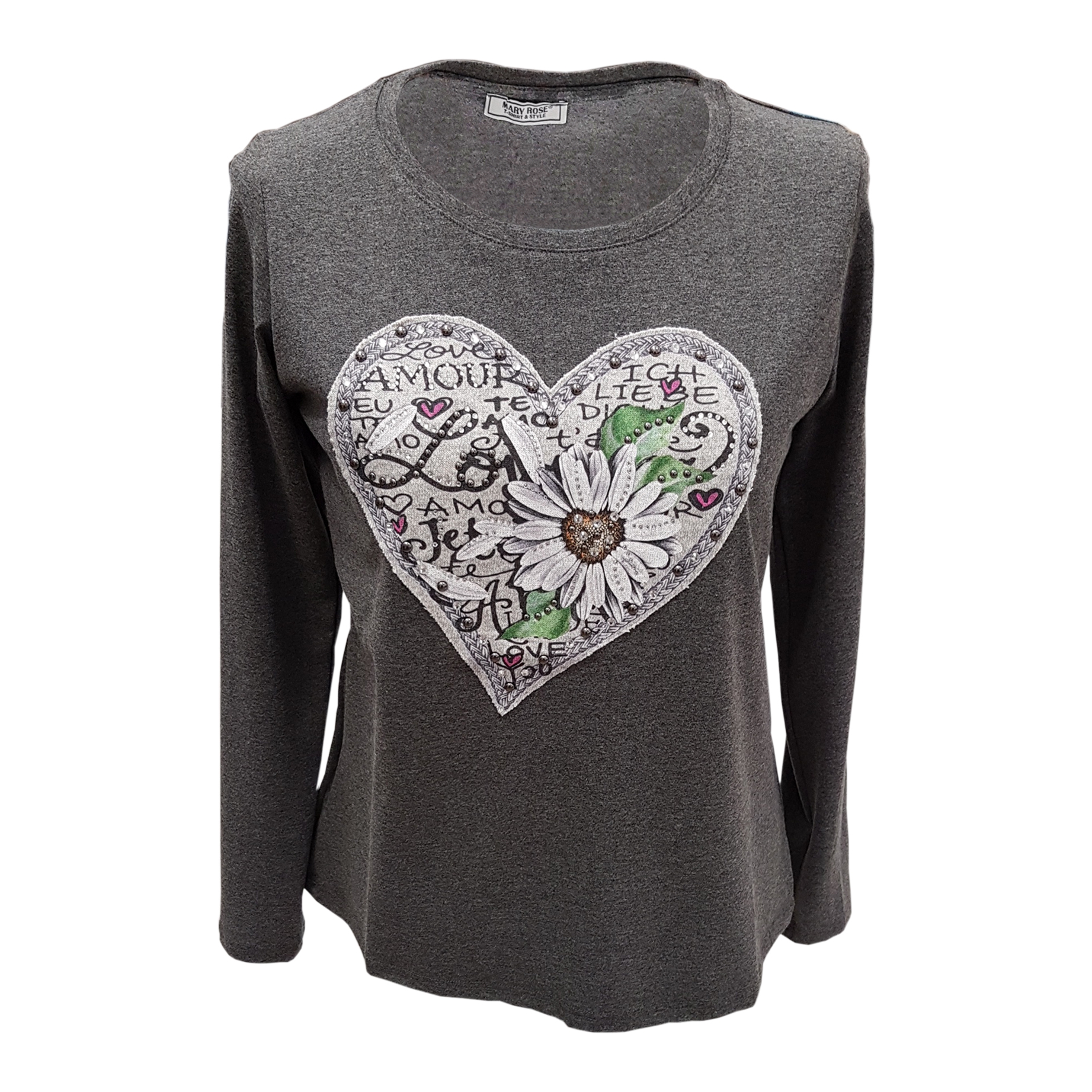 T-SHIRT STAMPA CUORE CON FIORI